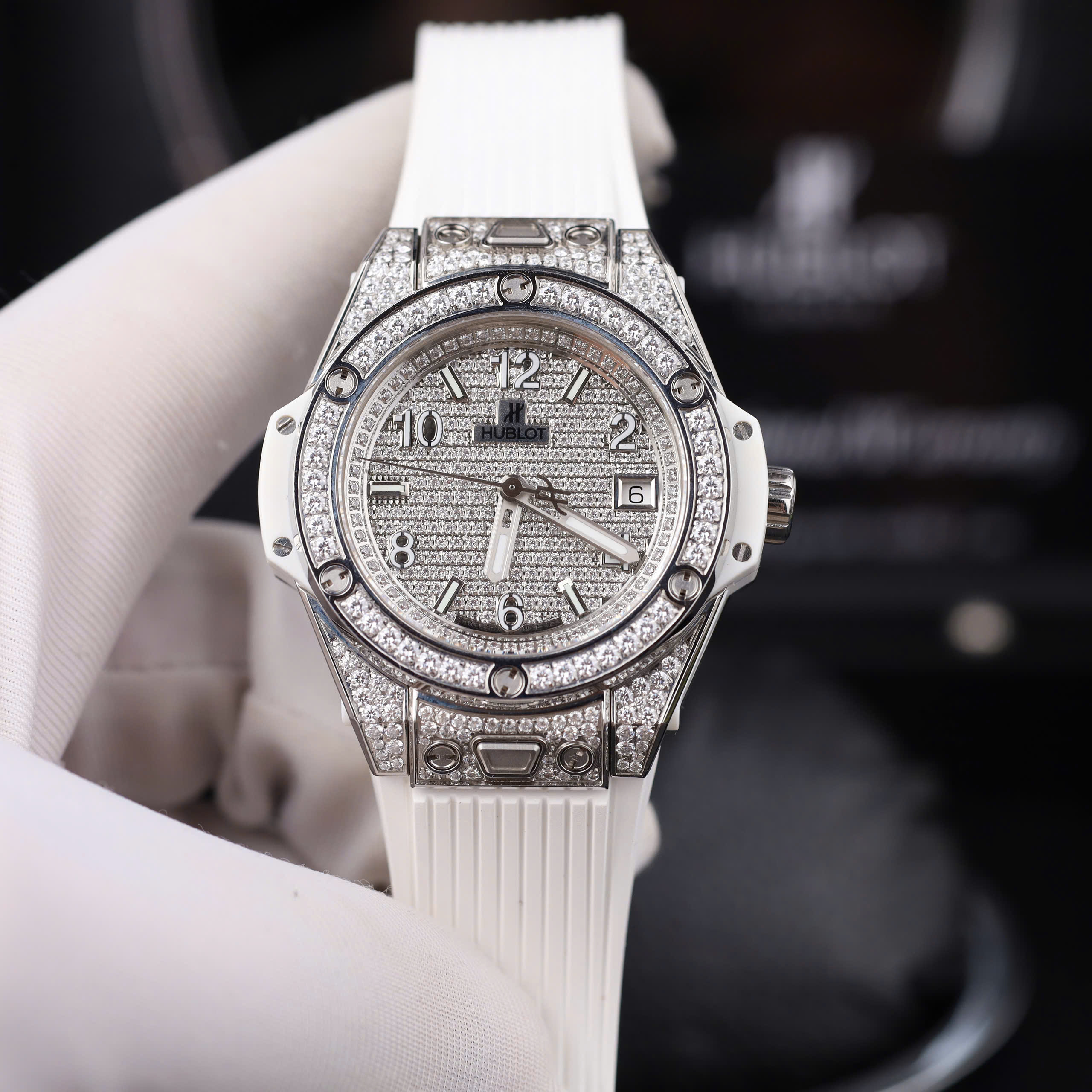 Chi tiết trang sức tinh tế: Được trang trí bằng những viên đá quý được gắn tỉ mỉ, đồng hồ Hublot replica của chúng tôi có những hoa văn quyến rũ và chi tiết tinh tế trên cả vỏ và mặt số, khó có thể phân biệt với những chiếc đồng hồ chính hãng mà không có thiết bị chuyên dụng.