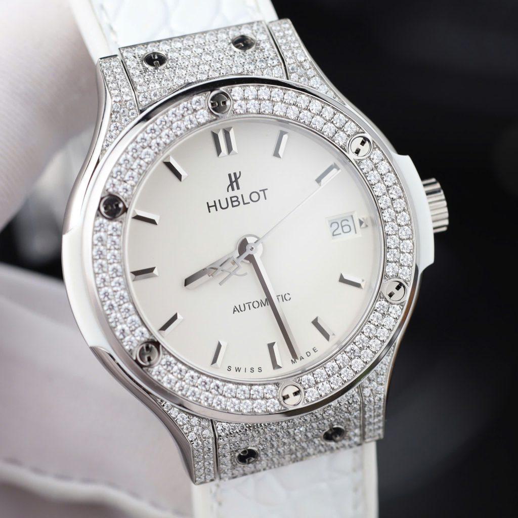 Chi tiết trang sức tinh tế: Được trang trí bằng những viên đá quý được gắn tỉ mỉ, đồng hồ Hublot replica của chúng tôi có những hoa văn quyến rũ và chi tiết tinh tế trên cả vỏ và mặt số, khó có thể phân biệt với những chiếc đồng hồ chính hãng mà không có thiết bị chuyên dụng.