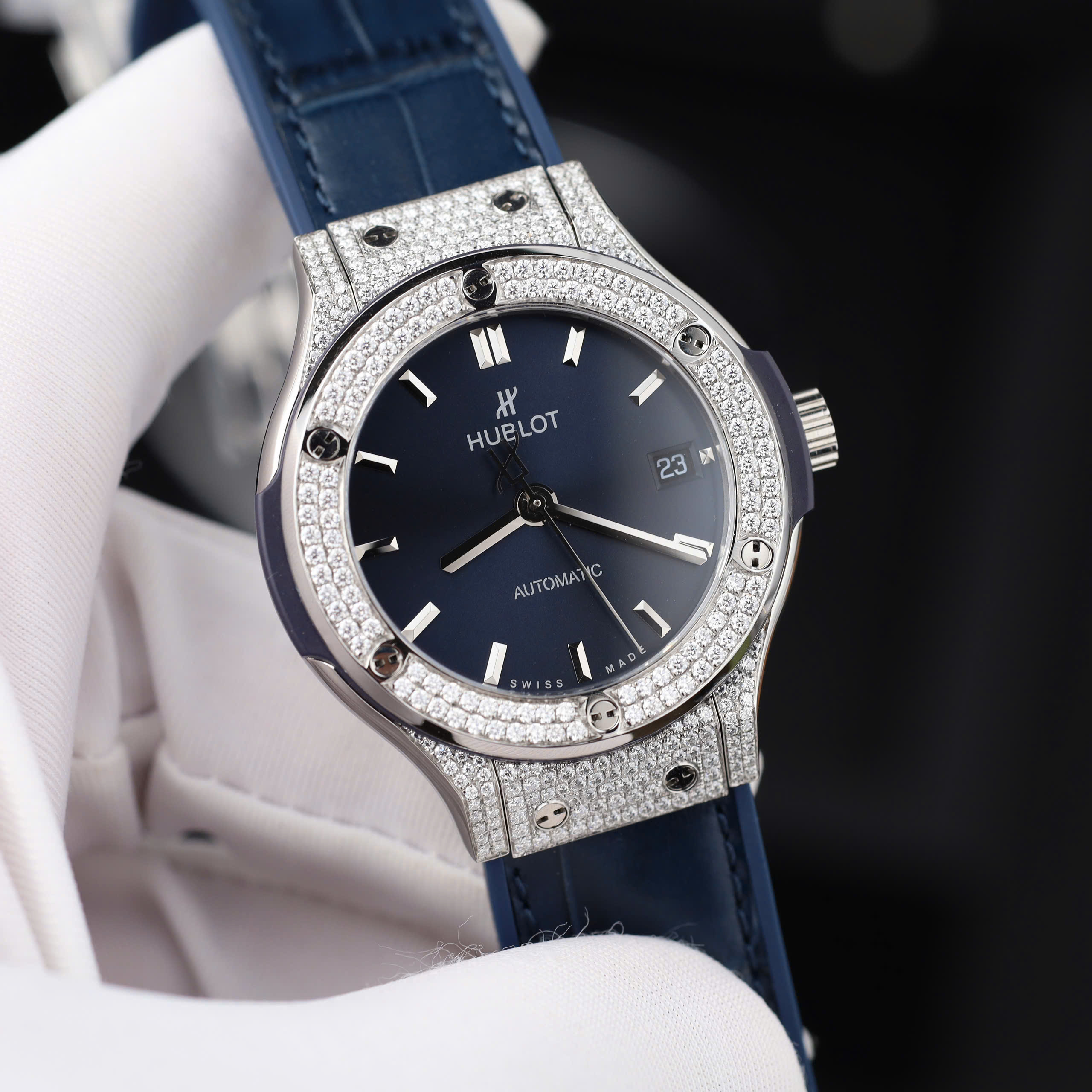Chi tiết trang sức tinh tế: Được trang trí bằng những viên đá quý được gắn tỉ mỉ, đồng hồ Hublot replica của chúng tôi có những hoa văn quyến rũ và chi tiết tinh tế trên cả vỏ và mặt số, khó có thể phân biệt với những chiếc đồng hồ chính hãng mà không có thiết bị chuyên dụng.